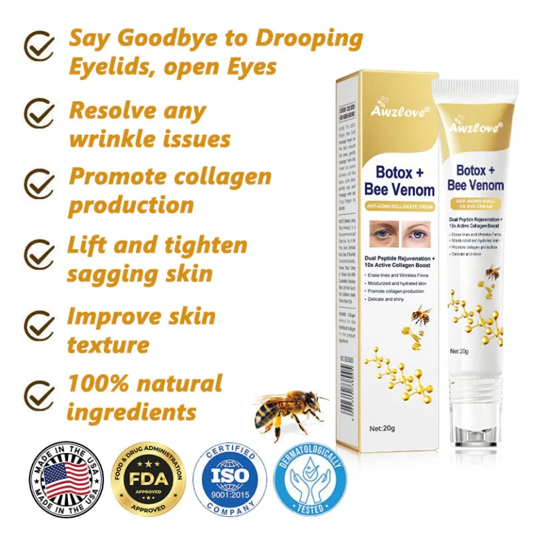 Fine lines, loss of firmness, and dull uneven skin are some of the most frustrating signs of getting older. Collagen and elastin decline naturally from your thirties onward, and the market is flooded with products that promise results but rarely deliver. If you’ve been searching for a smarter daily anti-aging solution, Awzlove® Bee Venom Roll-On Cream brings together some of the most studied actives in modern skincare — in one easy, targeted application.