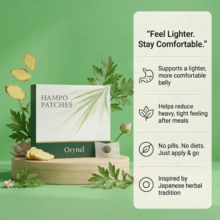 Waking up comfortable and watching that comfort disappear by mid-afternoon. The tight waistband. The shirt you keep pulling away from your stomach. The dread that settles in before every meal because you already know how you’ll feel an hour later. If bloating has become a predictable daily pattern that probiotics, enzyme capsules, and elimination diets have all failed to break, the solution may be simpler — and more ancient — than anything you’ve tried. Hanpo is a botanical warming patch inspired by centuries of Japanese herbal abdominal comfort tradition, delivering three time-trusted plant compounds transdermally through a ten-second daily application that requires nothing more from you than peeling and pressing.