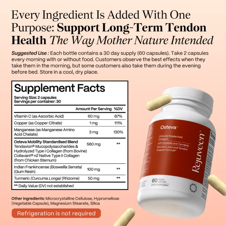 Unlike many ordinary joint supplements on the market that treat recurring discomfort as a generic inflammation problem requiring a generic anti-inflammatory response, Osteva™ takes a completely different approach. When oestrogen levels decline in women over forty, collagen production is directly disrupted — and collagen is the structural protein that gives tendons their strength and elasticity. Without consistent replenishment, tendons become progressively weaker and stiffer. Repeated daily use causes microscopic tears that accumulate over time, creating the deep, recurring ache that most people are told to manage with over-the-counter pain relief and cortisone shots.